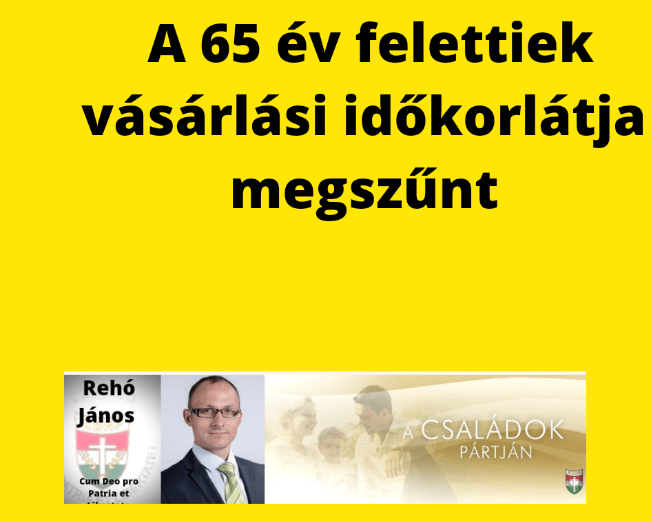 🚫A 65 év felettiek vásárlási időkorlátja megszűnt.