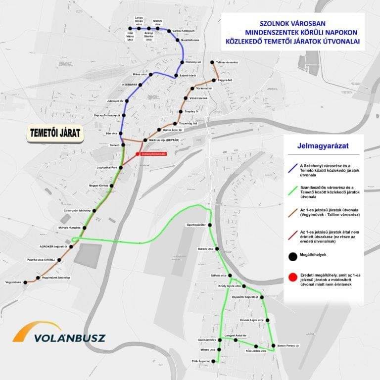 ✌️A megnövekedett utasforgalomra tekintettel Szolnok városban temetői céljáratok közlekednek 2020. október 23-án, 24-én, 25-én, 31-én és november 1-jén a Széchenyi városrészből és Szandaszőlős városrészből a temetőhöz „TEMETŐI JÁRAT” felirattal.
