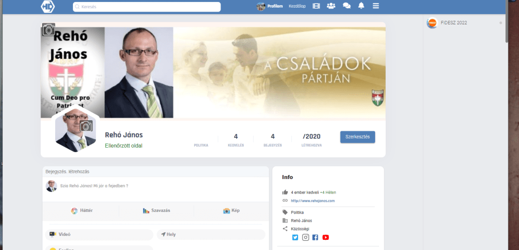 A bal felső sarokban elhelyezkedő keresőbe írjuk be, Rehó János, válasszuk ki az Oldalak menüpontot, és máris ott megtalálnak. De így a legegyszerűbb: katt ide!
