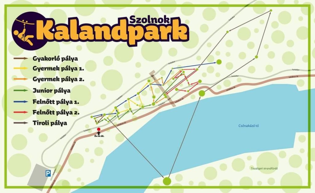 A Kalandpark területén 6 pálya található, melyeket testmagasság és életkor függvényében használhatnak a Vendégeink!