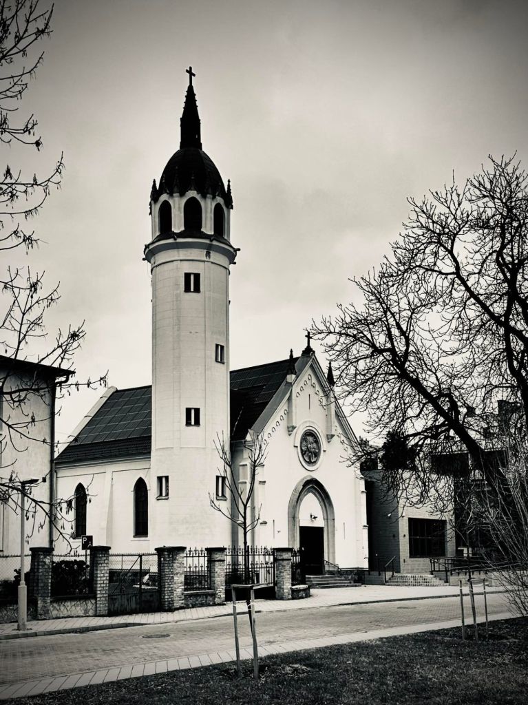A város legszebb parkjában található templom a reformáció fontos színhelyének, a wittenbergi vártemplomnak a mintájára épült, annak kicsinyített és egyszerűsített mása. A telket 1927-ben adományozta a város a gyülekezetnek, D. Geduly Henrik (1866-1937) püspök helyezte el a templom alapkövét. Gerey Ernő építész tervei alapján épült, 1932-ben adták át.