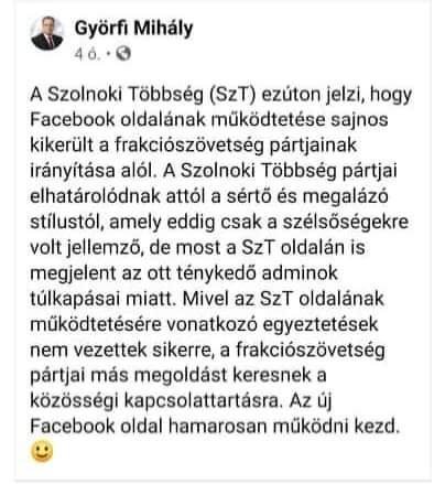 👉 Ezért nagyon fontos, hogy az ember ne adjon teret a szívében se a haragnak, se a gyűlöletnek. ✌️Kívánom, hogy a Szolnoki Többség mihamarább szabaduljon meg ettől a szélsőséges hangnemtől. Lehet ügyeket-elveket támadni, de emberi méltóságában másokat folyamatosan sértegetni nem túl szép dolog.