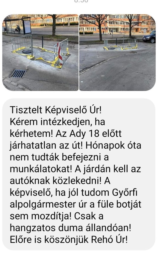 Már 2 évvel ezelőtt is tettünk több itt lakó nevében ez ügyben jelzést az önkormányzat felé, amelyre igéretet kaptunk, hogy a következő költségvetésbe belekalkulálják ezt a felújítást.